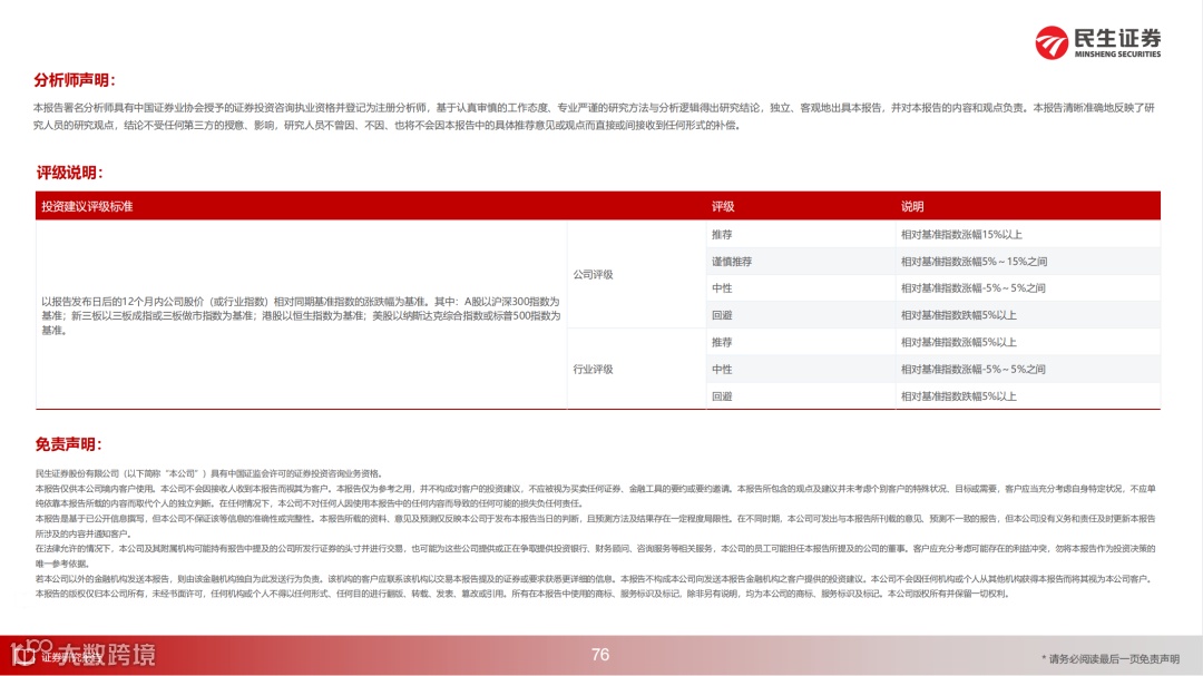 本报告署名分析师具有中国证券业协会授予的证券投资咨询执业资格并登记为注册分析师,基于认真审慎的工作态度、专业严谨的研究方法与分析逻辑得出研究结论,独立、客观地出具本报告,并对本报告的内容和观点负责。本报告清晰准确地反映了研究人员的研究观点,结论不受任何第三方的授意、影响,研究人员不曾因、不因、也将不会因本报告中的具体推荐意见或观点而直接或间接收到任何形式的补偿。