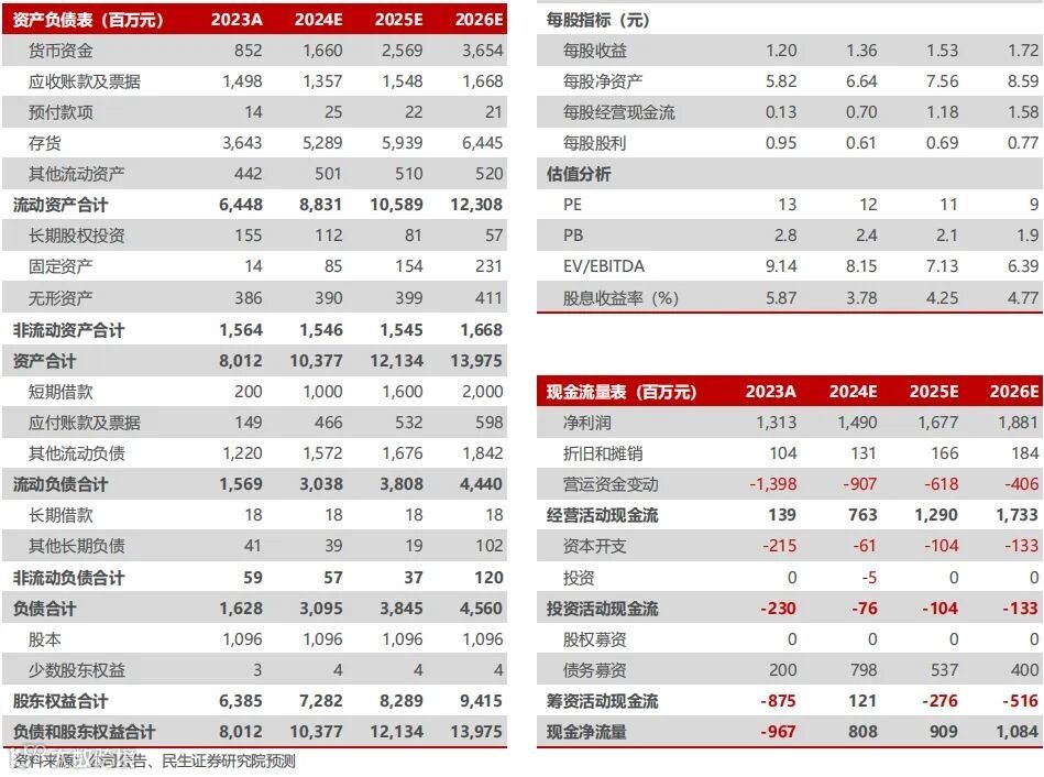 投资建议:黄金产品高景气度拉动公司成长,渠道拓展稳步推进,低估值高股息率标的,预计2024-2026年公司实现营业收入198.27、226.13、253.83亿元,分别同比+21.7%、+14.1%、+12.3%;归母净利润分别为14.89、16.77与18.80亿元,同比+13.2%、+12.6%与+12.1%,对应PE为12/11/9倍,维持“推荐“评级。