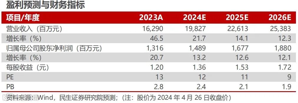 事件概述。2023年,公司实现营收162.90亿元,同比+46.52%,实现归母净利润13.16亿元,同比+20.67%,实现扣非归母净利润为12.68亿元,同比+23.64%。24Q1,实现营收50.70亿元,同比+23.01%,实现归母净利润3.41亿元,同比-6.61%,实现扣非归母净利润3.36亿元,同比-5.70%。