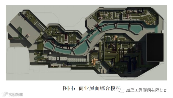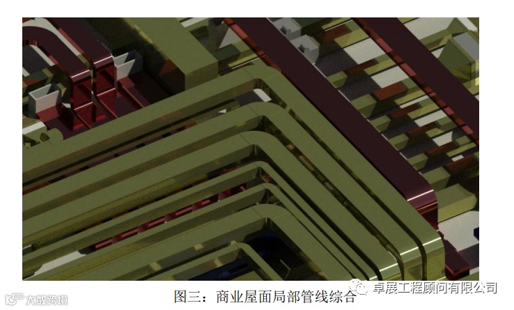 使用REVIT进行绘制3D图时,先分好工作集或者系统类型,这一步骤就像CAD中的设置图层;之后根据屋面规划的情况绘制管线及设备,最终的效果经过渲染之后,如下图。