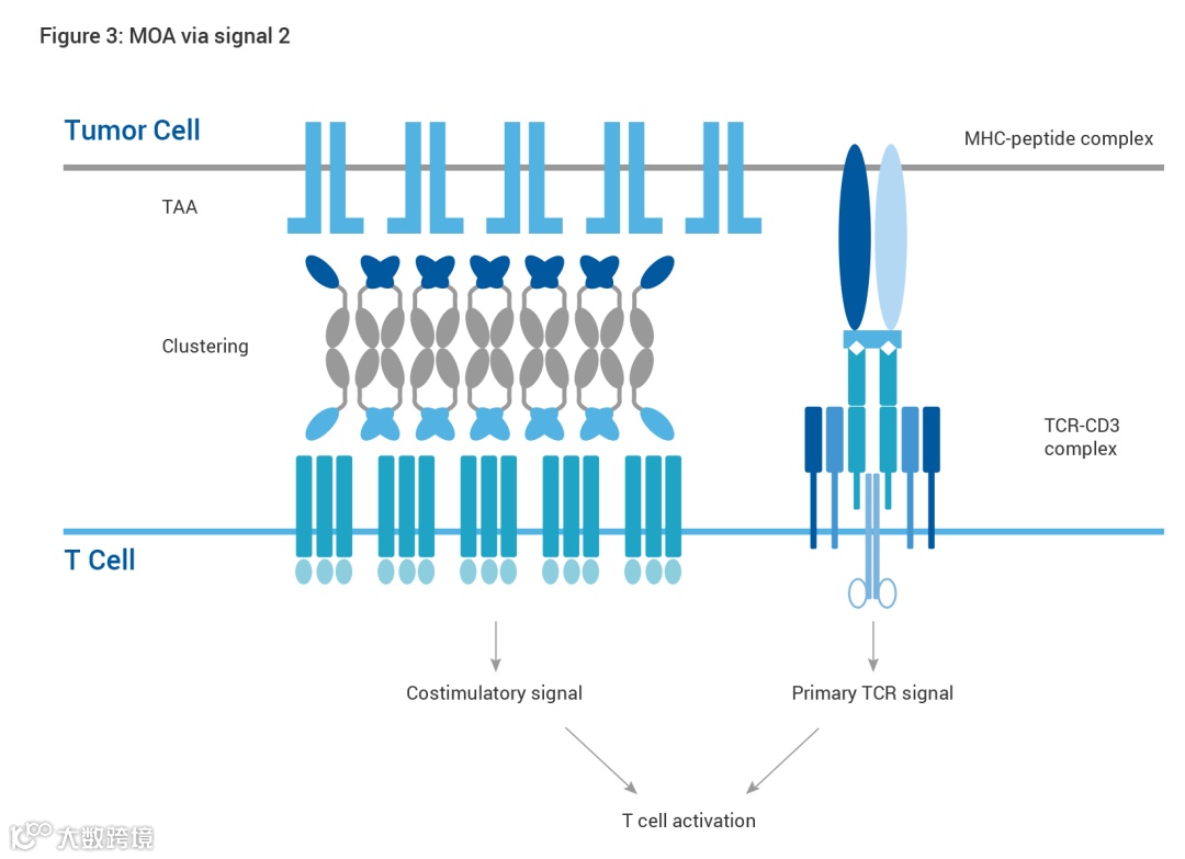 HBICE® 分子可以同时识别肿瘤细胞上的特异性肿瘤相关抗原(TAA)和免疫细胞(例如 T 细胞或 NK 细胞)上的共刺激分子,并将免疫细胞和肿瘤细胞拉近在一起,从而高效且有选择性地激活肿瘤微环境中的免疫细胞,并防止了外周免疫细胞的非特异性活化。另外,HBICE®平台技术提供灵活性,可以产生具有不同结构和结合方式的分子,并提供活性,以实现通过依靠组合疗法通常无法实现的分子作用机制。