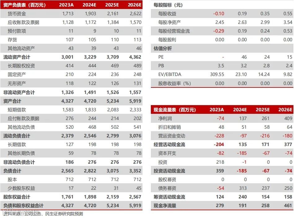 医美业务具备较强盈利能力,带动盈利能力上行。1)毛利率端:24H1,毛利率为29.15%,同比+1.23 pct,其中,医药、医美生科、贸易业务毛利率分别为31.7%、82.9%、4.3%。24Q2,毛利率为40.66%,同比+9.30 pct。2)费用率端:24H1,销售费率、管理费率、研发费率、财务费率为17.40%、4.89%、1.70%、3.32%,同比-0.13、+0.12、+0.15、+0.31 pct,其中,销售费用同比增加主要系宣传推广咨询费、员工薪酬等有所增加;24Q2,销售费率、管理费率、研发费率、财务费率为24.83%、6.34%、2.05%、3.62%,同比+3.61、+1.22、+0.42、+0.40 pct。3)净利率端:24H1,净利率为2.03%,同比-0.36 pct;24Q2,净利率为3.95%。