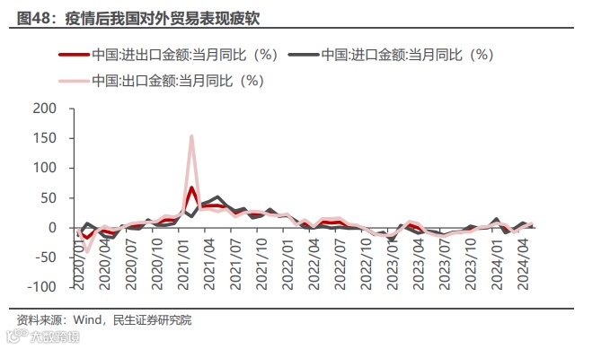 国际市场方面,受疫情后全球经济走势与复杂国际局势变化影响,中国对外贸易呈现一定压力。自2022年10月我国以美元计价的进出口总值增速转负以来,进出口总值、进口总值与出口总值均表现疲软。截至2023年末,以美元计价,中国进出口金额累计同比下降5.0%,其中出口累计同比下降4.6%,进口累计同比下降5.5%。但分地域看,贸易情况存在结构性差异:中国与“一带一路”倡议国家和地区的贸易增长较好,2023年,中国对共建“一带一路”倡议国家进出口额为19.47万亿元,同比增长2.8%,占进出口总值的 46.6%,规模和占比均为倡议提出以来的最高水平。在地域贸易情况存在分化的背景下,苏美达在“一带一路”倡议国家和地区的业务扩展和客户积累将帮助其在众多竞争者中占据优势。公司进一步深化与欧洲、日本、中国香港商业银行、信用保险公司等境外金融机构合作的战略也将助力其打造有竞争力的金融服务解决方案,布局机电设备进口业务海外版图。但总体来说,机电设备进口业务仍然面对国际金融和政治风险事件的潜在冲击。