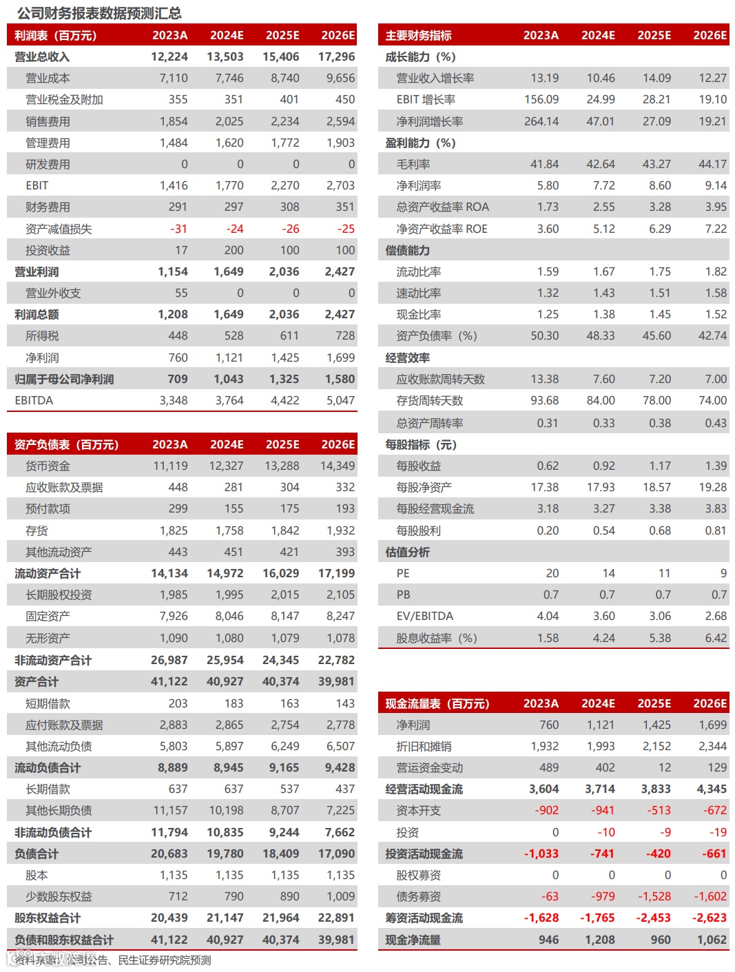 投资建议:全年来看公司有税整体呈现复苏态势,奥莱/购物中心增长相对韧性,未来有望持续带动公司有税增长;免税方面,公司万宁离岛免税项目于2023年4月8日正式营业,未来有望逐步释放盈利能力。此外,随着出入境逐步放开,市内免税相关政策有望加速推出,打开公司在市内免税和机场免税部分增量空间。我们预计24-26年公司归母净利润分别为10.43/13.25/15.80亿元,对应24-26年PE为14X/11X/9X,维持“推荐”评级。