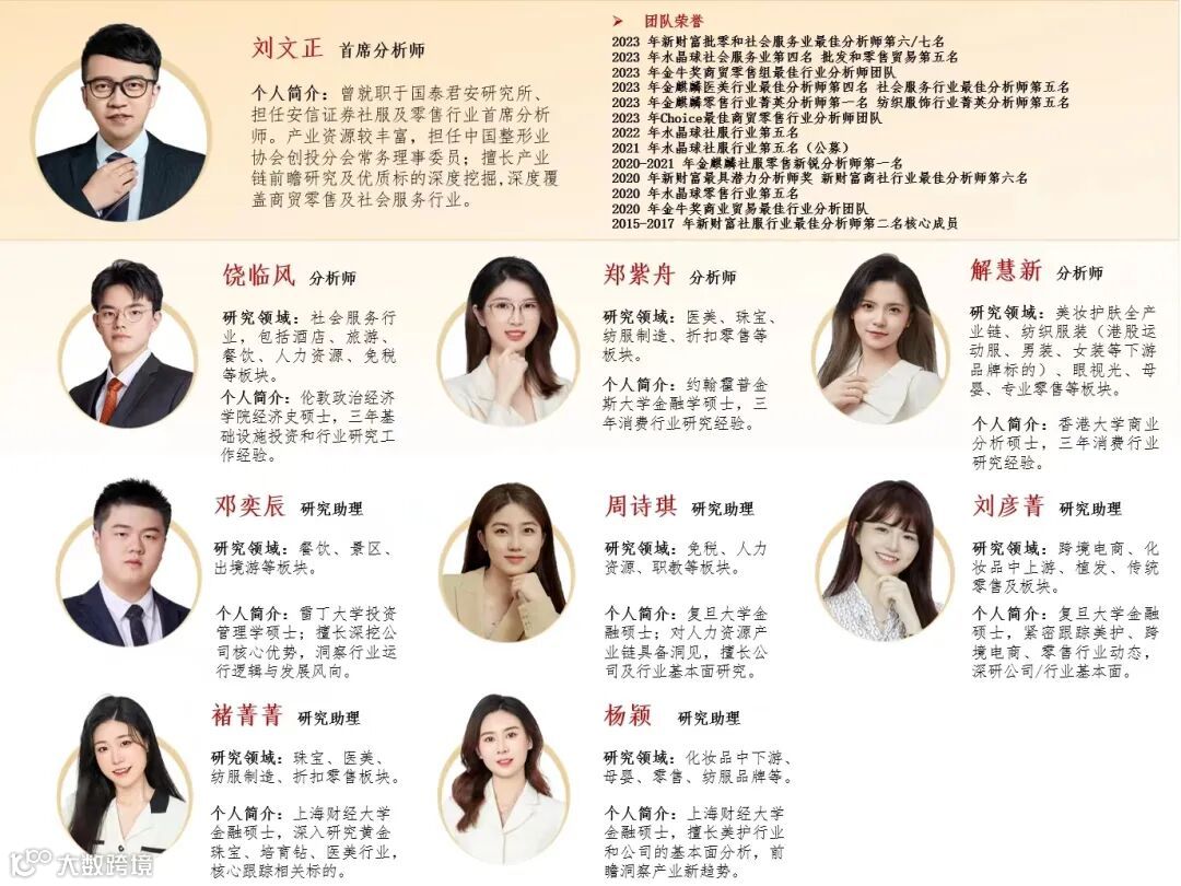 正视可选消费&海外研究 华西证券可选消费大组刘文正团队,大组深度覆盖社会服务、海外大消费、科技互联网、品牌及专业零售、电商、家电、纺服教育、轻工制造、黄金珠宝、医美美妆及潮玩IP等新兴消费等细分领域,探寻消费及海外研究深度价值!欢迎关注!