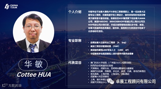 华敏先生 是一名加拿大注册专业工程师,在建筑楼宇的工程设计、绿色咨询和机电项目管理方面有着丰富的经验。他曾经在WSP集团旗下的加拿大MMM公司、美国PARSONSBRINCKERHOFF上海分公司分别任职,并成功地带领他的团队在中国、美国、加拿大和迪拜的各类酒店、综合体、医院和文化类项目中完成了众多地标性项目。