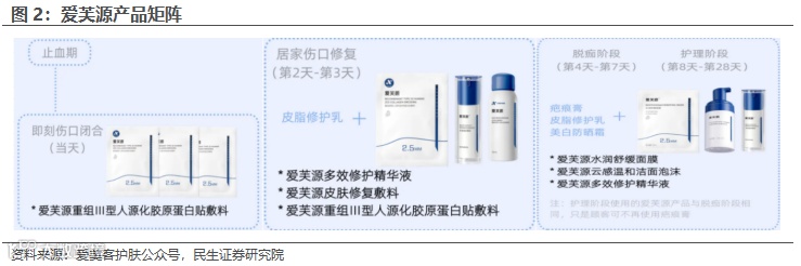 爱芙源系列:光电/水光项目后的居家护理方案,分级分阶段科学养护。爱芙源依托公司强大研发实力和项目经验,聚焦美后修复,成立源力实验室,从源头上探寻美后肌肤修护方案,以针对解决医美项目后红肿热(即刻)、干燥色沉(长期)问题,目前已上线在售产品包括云感温和洁面泡沫、水润舒缓面膜;另有多效修护精华、重组III型人源化胶原蛋白贴敷料、皮肤修复敷料重组III型人源化胶原蛋白三款产品待售,后续防晒等产品也将陆续推出。