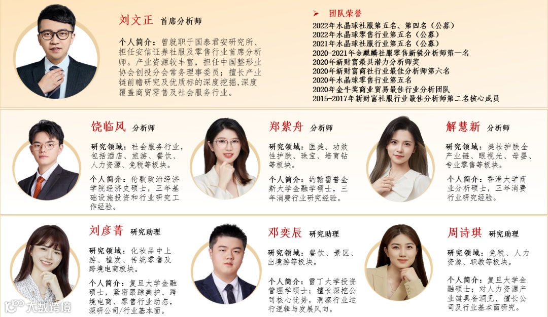 正视可选消费&海外研究 华西证券可选消费大组刘文正团队,大组深度覆盖社会服务、海外大消费、科技互联网、品牌及专业零售、电商、家电、纺服教育、轻工制造、黄金珠宝、医美美妆及潮玩IP等新兴消费等细分领域,探寻消费及海外研究深度价值!欢迎关注!