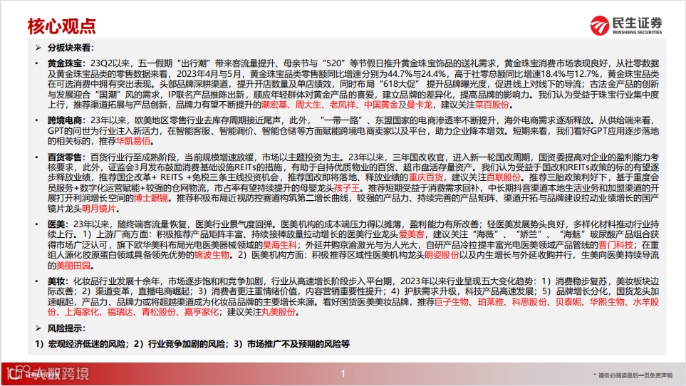 导读:商贸零售行业2023年中期投资策略:把握消费新浪潮,变革拥抱新成长【民生商社刘文正】