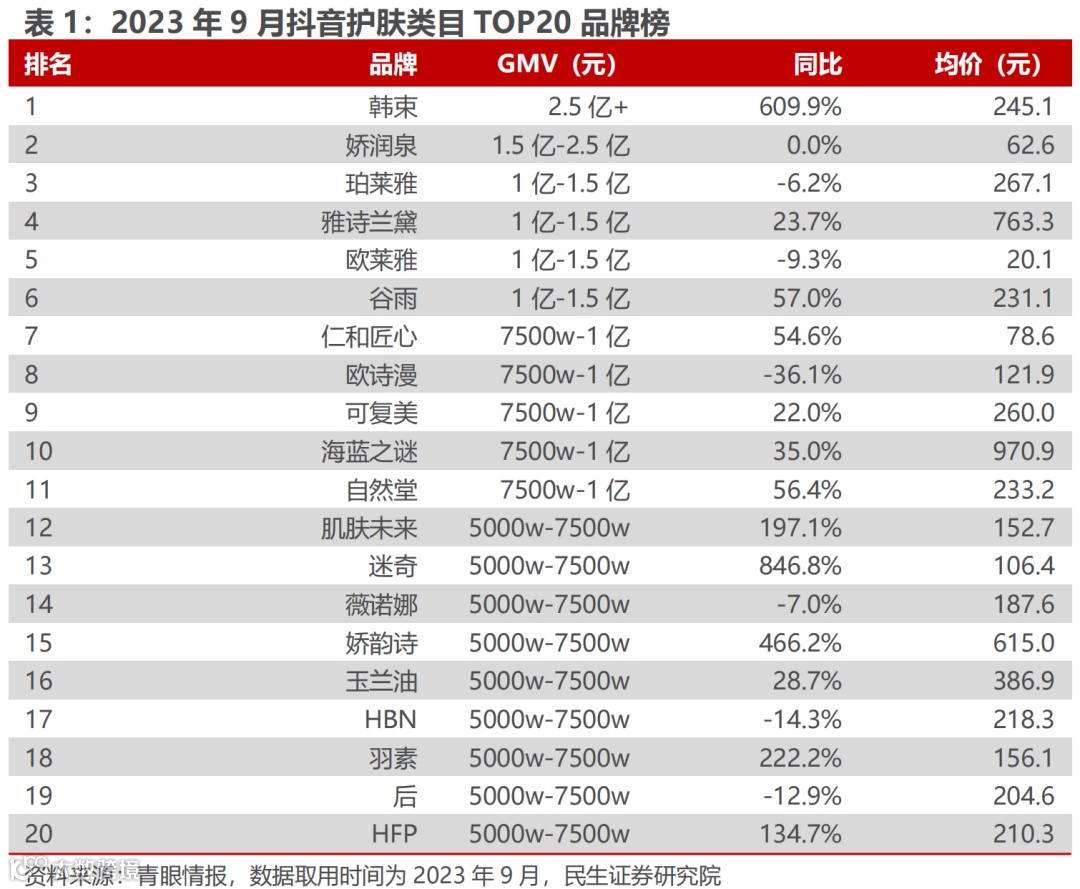 证券研究报告:零售周观点:华凯易佰提前完成全年激励目标,9月抖音美妆GMV超130亿元,韩束蝉联抖音第一