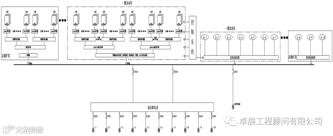 Five generators will be provided to serve the power demand of 7000kVA for the first phase of the project. 25% of the power will be generated by solar. Solar power will be prioritised. When the power consumption exceeds the photovoltaic capacity, gen-set will be started.