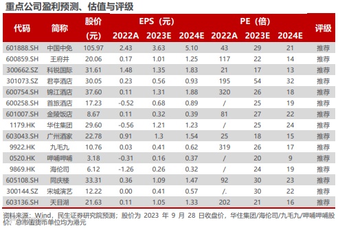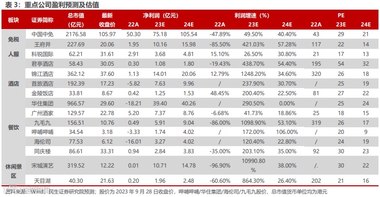 住宿餐饮服务销售收入同比增加:根据国家税务总局,中秋国庆假期,受居民出行及旅游消费火热带动,住宿餐饮服务销售收入同比增长25.5%,其中旅游饭店、露营地服务、民宿服务销售收入同比分别增长1.3倍、1.5倍、45.5%。
