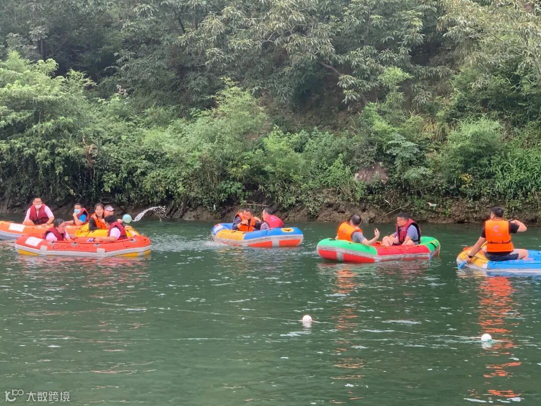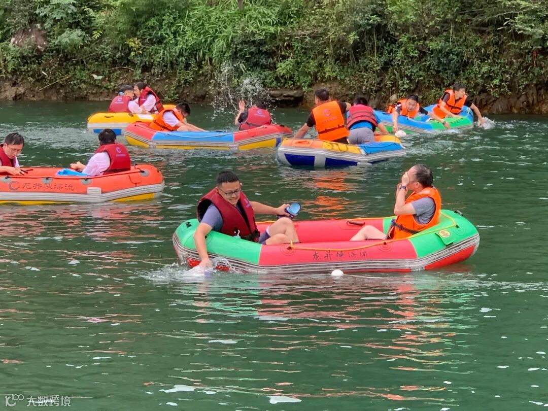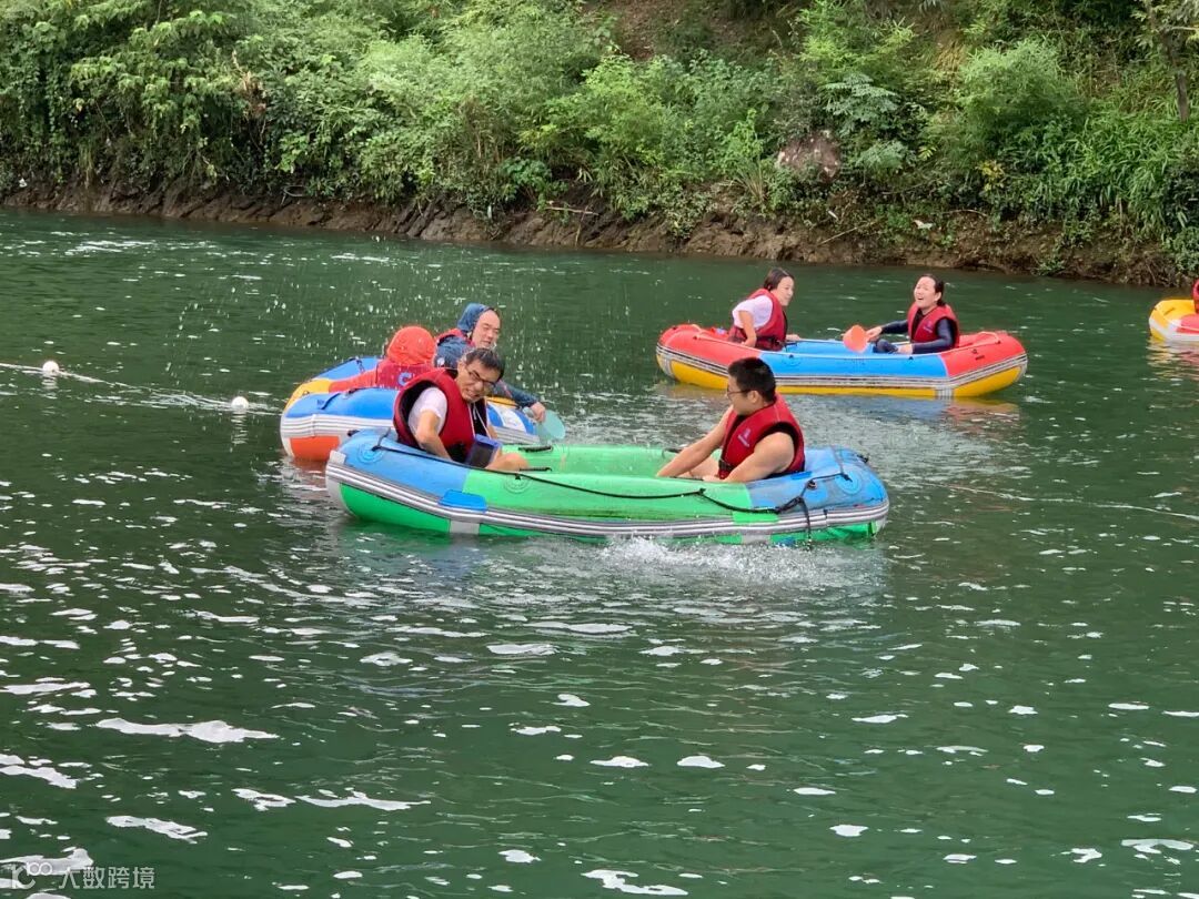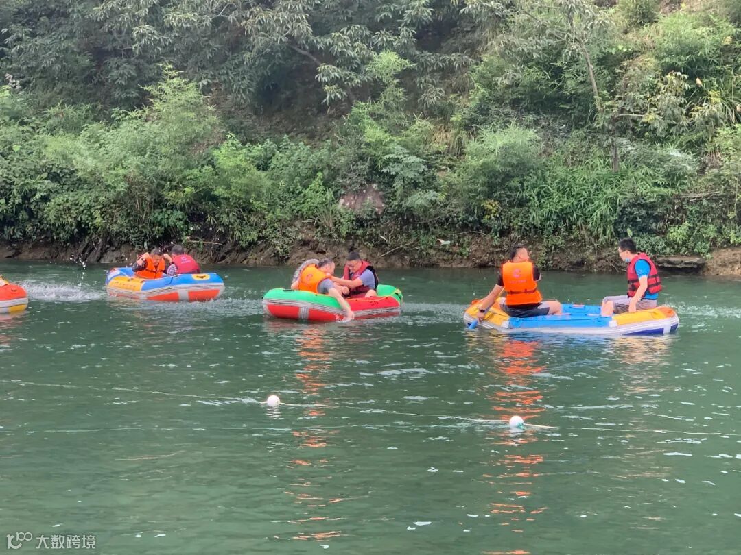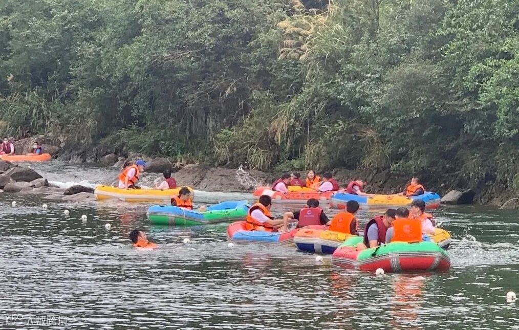 漂流过程中,泼水活动成为大家的主要活动任务,大家三两成组,嬉闹互动。促进了团队成员的沟通以及协作能力同时也增强了团队的凝聚力。