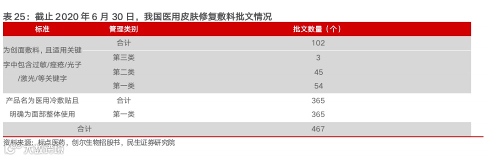 高复购+高盈利,驱动具备一定研发实力的企业加速布局市场。企查查数据显示,目前全国范围内共有2.5万余家医用敷料相关企业,我国市场上的医用敷料以二类管理的医疗器械为主,此外据创尔生物招股说明书,截止2020年6月30日,我国医用皮肤敷料的批文合计超过400个。