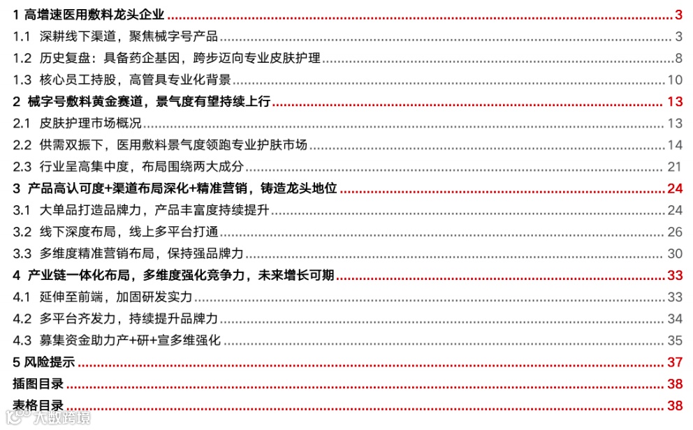 2021-至今:敷尔佳产业链一体化布局皮肤护理产品。2021年至今,敷尔佳完成对敷特佳以及北星药业两家公司的100%换股收购。完成产品线、产业链的整合,开启了产业链一体化布局皮肤护理市场之路。