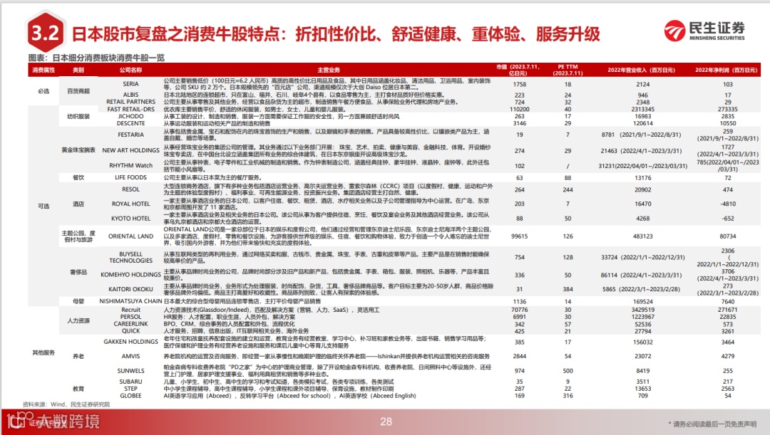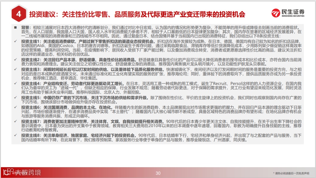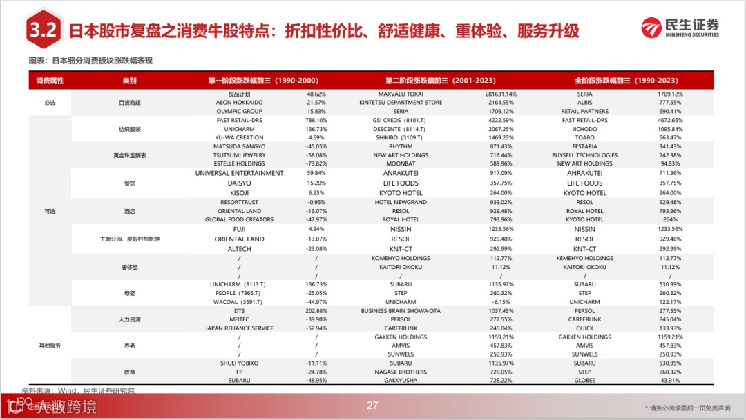 90年代至今日本商贸社服行业消费牛股的背后: 穿越“漫长的季节”——总览篇【民生商社刘文正】 正视可选消费&海外研究