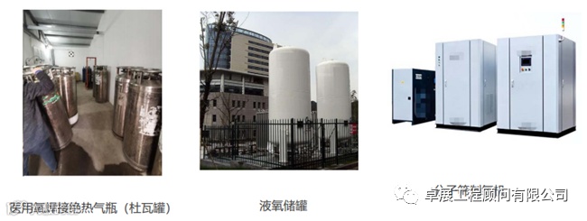 2)介于液氧供应源初期投资较低,并可由专业公司进行运营维护,根据本项目定位,作为大型高端综合医院考量,同时医院位于大型城市,市场液氧供应较充沛,建议院区采用液氧站供应源形式。