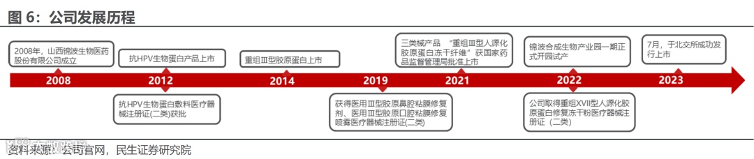 2008-2013年:关注女性健康,研发抗病毒功能蛋白。2008年,山西锦波生物医药股份有限公司成立。公司致力研发抗HPV生物蛋白相关医疗器械类产品,于2012年上市并开始销售。