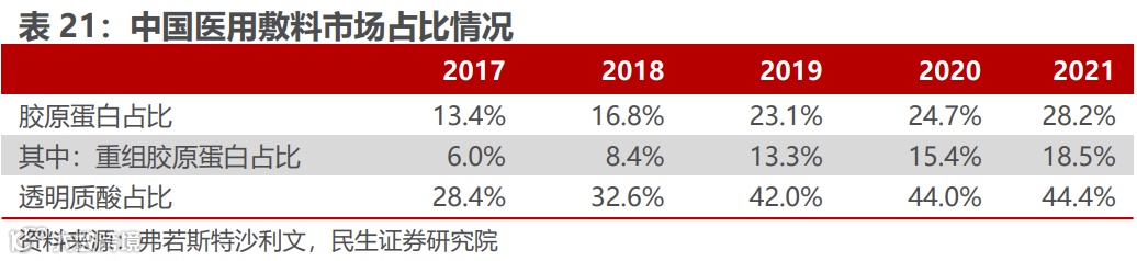在填充塑形市场中,交联型重组胶原蛋白也有望拓宽市场。