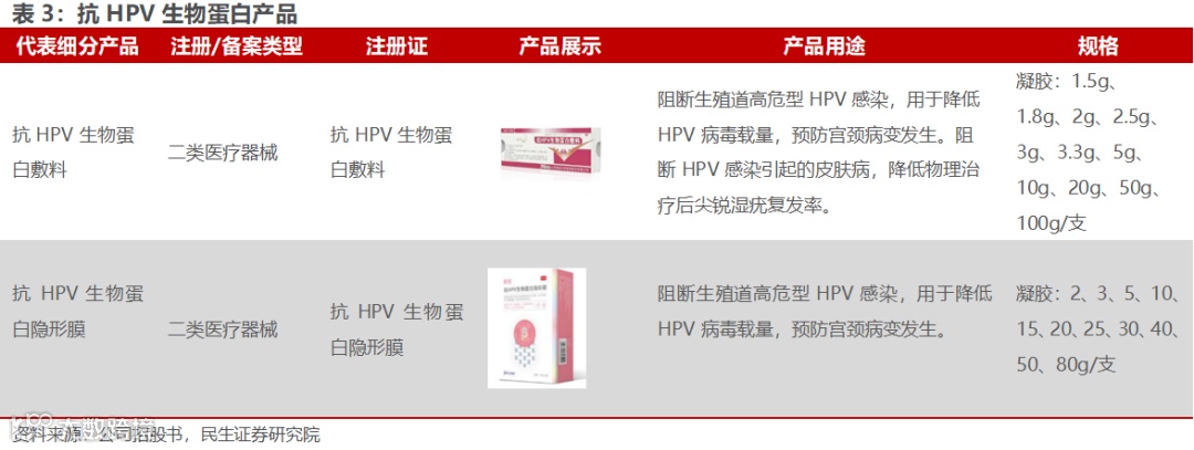 2)抗HPV生物蛋白产品业务方面,公司的抗HPV生物蛋白产品主要为二类械产品,包括抗HPV生物蛋白敷料、抗HPV生物蛋白隐形膜等;产品以酸酐化牛β-乳球蛋白为主要原材料,阻断生殖道高危型HPV感染,预防宫颈病变发生。