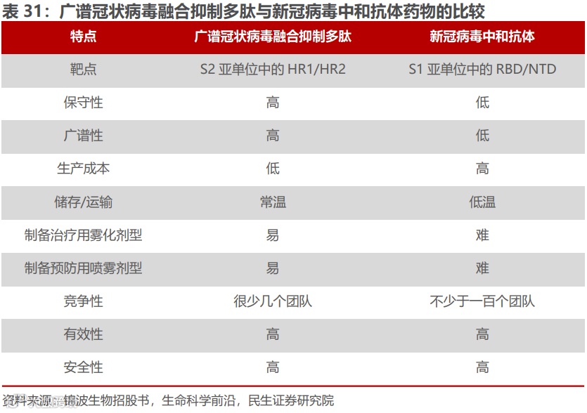 广谱抗冠多肽药物作为防控新冠疫情最佳武器,生产成本低,储存和使用方便,未来应用空间广泛。公司以SARS-CoV-2HR17基序与泛冠状病毒抑制剂EKI复合的晶体蛋白为核心成分,正在开展研发广谱抗冠状病毒新药多肽EK1喷雾剂,目前一期临床单次给药已完成,已进入二期给药阶段。和抗体相比,多肽类抑制剂能通过化学合成的方式直接合成,降低时间成本与生产成本,可通过鼻腔给药,存储成本及运输成本较低,行业竞争对手少,具有巨大的发展潜力。