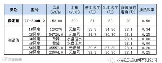 图十:冷却塔测试数据表