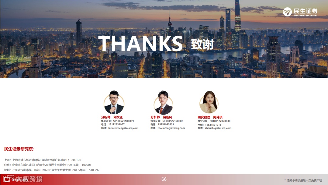 本报告署名分析师具有中国证券业协会授予的证券投资咨询执业资格并登记为注册分析师,基于认真审慎的工作态度、专业严谨的研究方法与分析逻辑得出研究结论,独立、客观地出具本报告,并对本报告的内容和观点负责。本报告清晰准确地反映了研究人员的研究观点,结论不受任何第三方的授意、影响,研究人员不曾因、不因、也将不会因本报告中的具体推荐意见或观点而直接或间接收到任何形式的补偿。