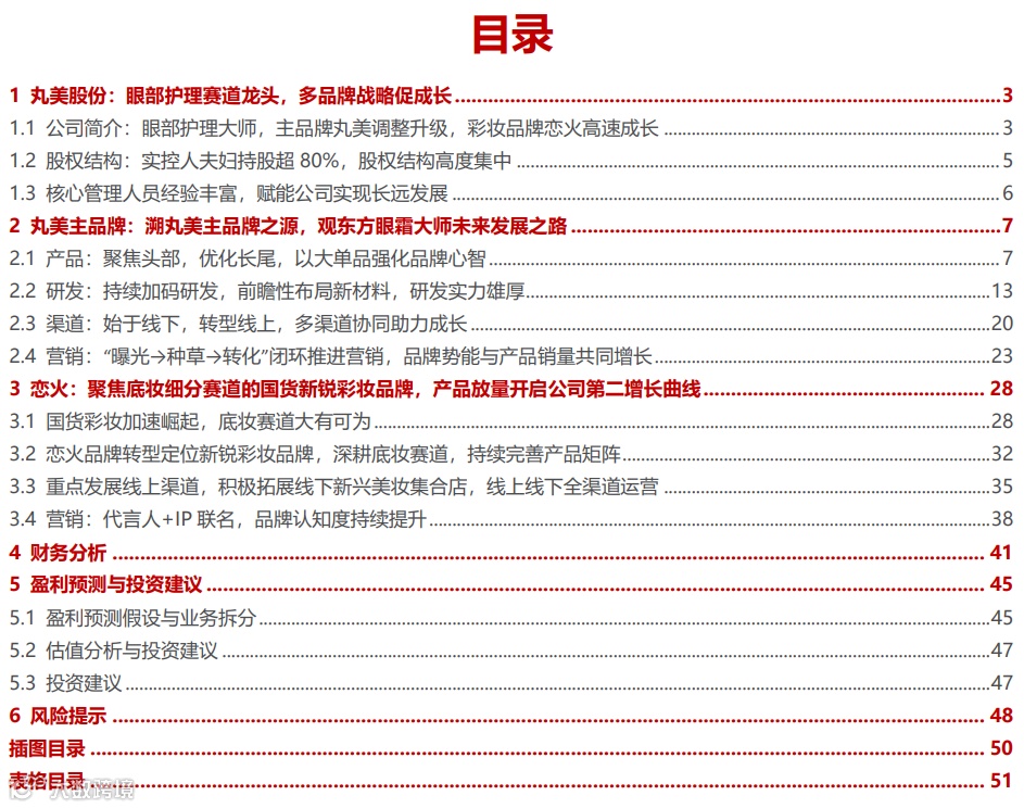 1.1 公司简介:眼部护理大师,主品牌丸美调整升级,彩妆品牌恋火高速成长