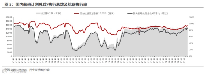 国内航班情况:截至3月3日,国内航班计划总数7日平均(班次)为14776次,国内航班执行总数7日平均(班次)为13455次,航班执行率为90.0%,较前一日相比上升2.1pcts