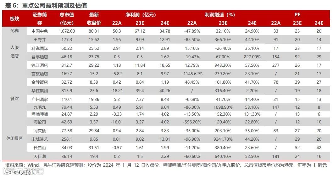 天目湖:短期关注两大方向:1)天目湖位处长三角中心地带,区位交通优势显著,引流能力持续提升;2)公司酒店矩阵持续壮大,带动营收增长,酒店业务当前毛利率水平偏低,关注酒店业务后续经营结构优化为公司带来的内生动能。长期聚焦四大增长点:1)根据长三角一体化示范区水乡客厅国土空间详细规划新闻发布会,沪苏湖铁路预计2024年完工,天目湖上海客流有望增长;2)溧阳城发入股后天目湖成为国资企业,后续有望获溧阳市政府多方位支持;3)动物王国项目启动,建成后有望成为公司利润新增长点。4)公司二次消费韧性足,商品销售及体验项目创新可为营收带来新增量。预计23Q4营收1.30亿元/同比+3.6%,归母净利润0.30亿元,同比+68.1%。