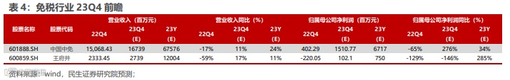 中国中免:公司自12月开始进入旺季,随着香化馆的开业,客流有望进一步增强,且公司与上海机场新租金协议自2023年12月开始生效有望降低租金费用。我们结合2023年Q3表现及Q4业绩快报,预计23Q4公司收入为167.39亿元/yoy+11.09%,归母净利润为15.10亿元/yoy+275.44%。