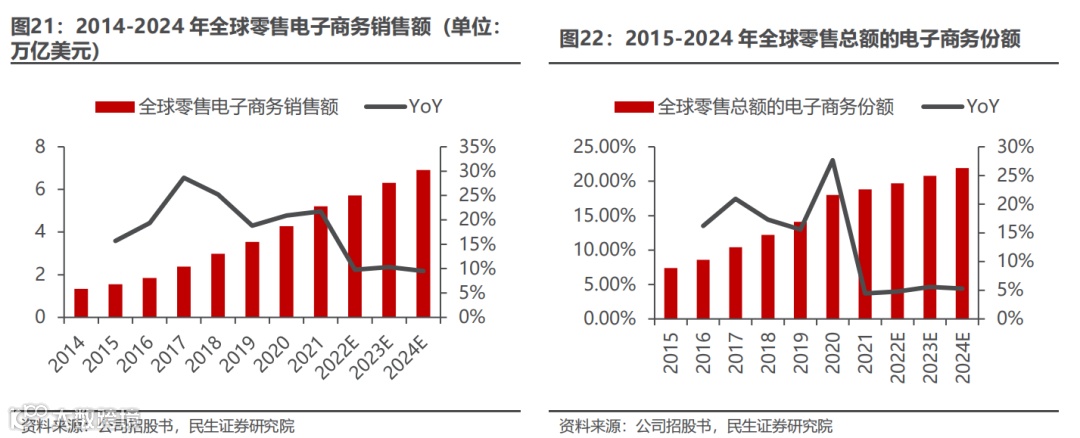 2.1 跨境电商行业:全球零售电商行业规模持续增长,渗透率持续提升