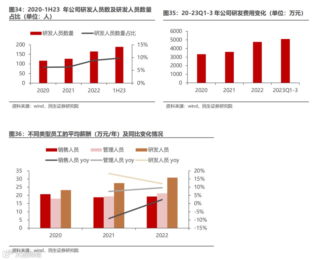 存货减少、资产负债率下降。由于公司良好的供应链技术研发与体系建设,存货金额呈下降趋势,截至3Q23为8.77亿元,体现出公司存货良好的流动性。此外,公司的资产负债率也不断下降,截至1H23为33.41%,公司目前经营状况良好。
