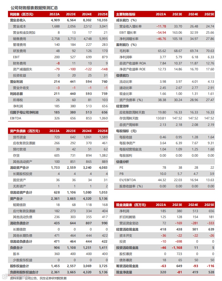 综上我们预计23-25年收入为65.64/83.02/103.55亿元,同增 34.0%/26.5%/24.7%。毛利率分别为68.7%/69.7%/70.6%。