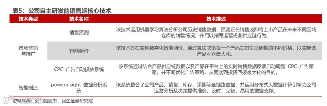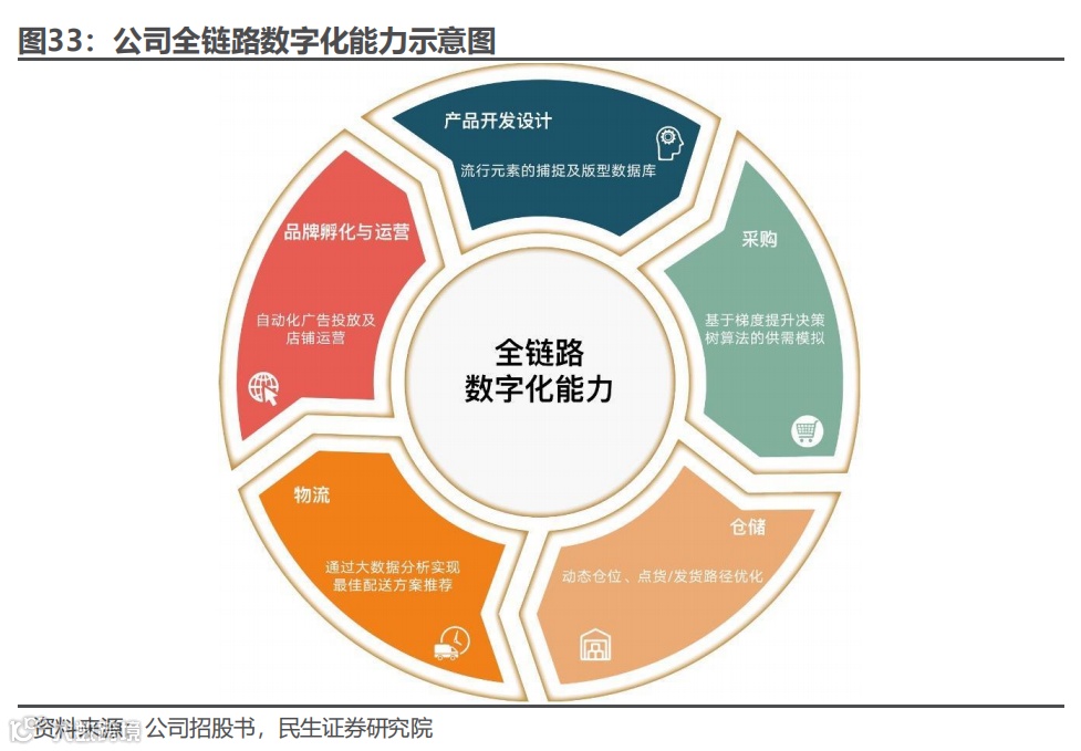 利用供给端和销售端的大量数据,不断优化自身决策能力。公司的全链路数字化能力指的是公司可以从供给端与销售端两方面获取大量数据并根据数据不断优化自身决策的能力。公司以全链路数字化能力为基础,致力于打通全业务链条数据,实现全面技术驱动的业务模式。公司通过多年来在产品开发设计、销售运营管理、效果监测和营销技术应用、物流系统算法和模型等方面积累的经验,不断完善技术驱动的业务流程,从而形成了较高的竞争壁垒,并最终体现在公司的业绩中。