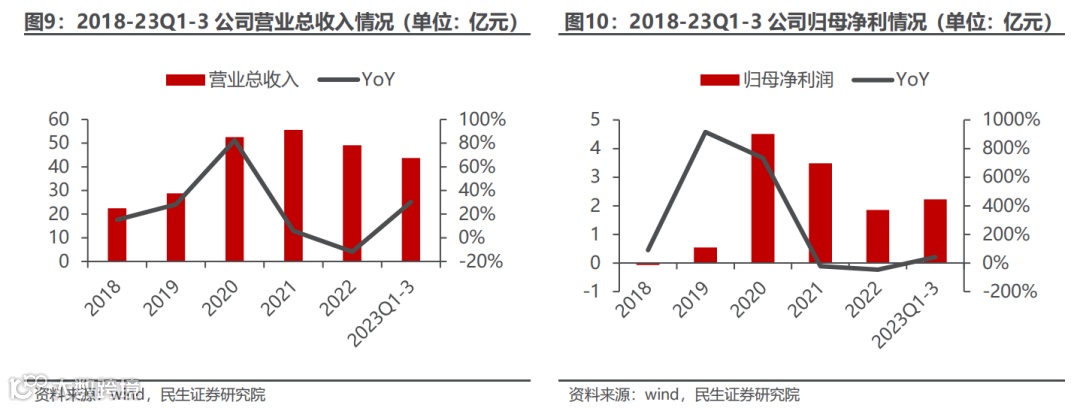 公司营业总收入持续增长,2022年受外部因素影响同比下滑。公司在2018-2021年营业总收入保持正增长,由于外部原因,包括境外线上消费高峰减退、亚马逊封号潮、行业去库存、汇率变动等,导致公司2022年营业总收入同比下滑11.9%,其中商品销售业务同比下滑10.9%。23年以来,外部不利影响逐渐消退,23Q1-3公司实现营业收入43.74亿元/yoy+37.58%,归母净利润2.33亿元/yoy+41.71%。公司整体营收增长主要是来自于在服饰配饰品类的长期深耕,底层能力在服饰细分品类中高度复用赋能品牌孵化和发展,23Q1-3内服饰配饰品类同比增长 39.62%;而非服饰配饰品类处于逐步消化前期不利因素及精简和聚焦细分品类的调整期,同比增长14.91%。