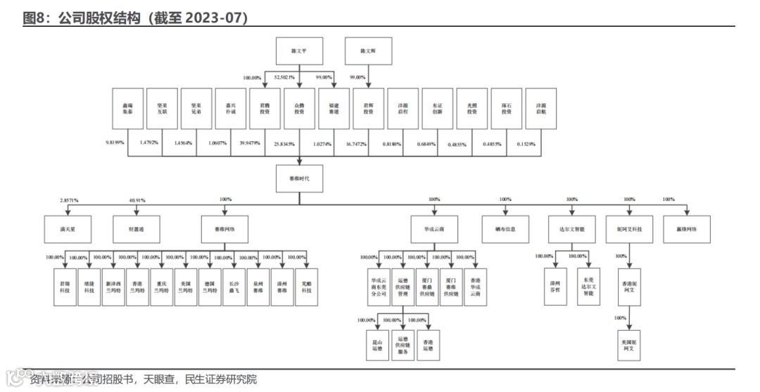 实控人为创始人陈文平,公司整体股权结构集中稳定。截至2023年7月,陈文平通过厦门君腾股权投资有限公司与厦门众腾股权投资合伙企业(有限合伙)间接持有公司 52.51%的股权,为实际控制人;公司董事陈小兰持股2.15%,公司财务负责人林文佳持股0.68%。公司股权结构稳定、股权集中于核心高级管理人员团队,有利于公司的持续创新与长期发展。