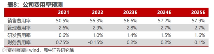 费用率方面,销售费用中的销售平台费假设增速与总收入一致,业务推广费随着收入增长,边际收益降低,假设增速高于收入增速。管理费用率、研发费用率和财务费用率保持相对稳定。在上述假设下,23-25年销售费用率为56.6%/57.2%/57.9%,管理费用率为2.8%/2.7%/2.7%,研发费用率为1.4%/1.5%/1.6%,财务费用率0.2%/0.2%/0.1%。