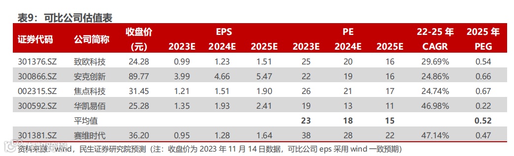 由于公司商品销售向品牌化发展,以及独立站收入占比不断提升,因此我们选取跨境电商卖家致欧科技、华凯易佰,品牌卖家安克创新,以及跨境电商平台焦点科技作为可比公司,由于公司的业务处于快速发展阶段,我们采取PEG估值法,24年平均PEG为0.52,公司PEG为0.47,低于可比公司平均值,公司估值具备优势。