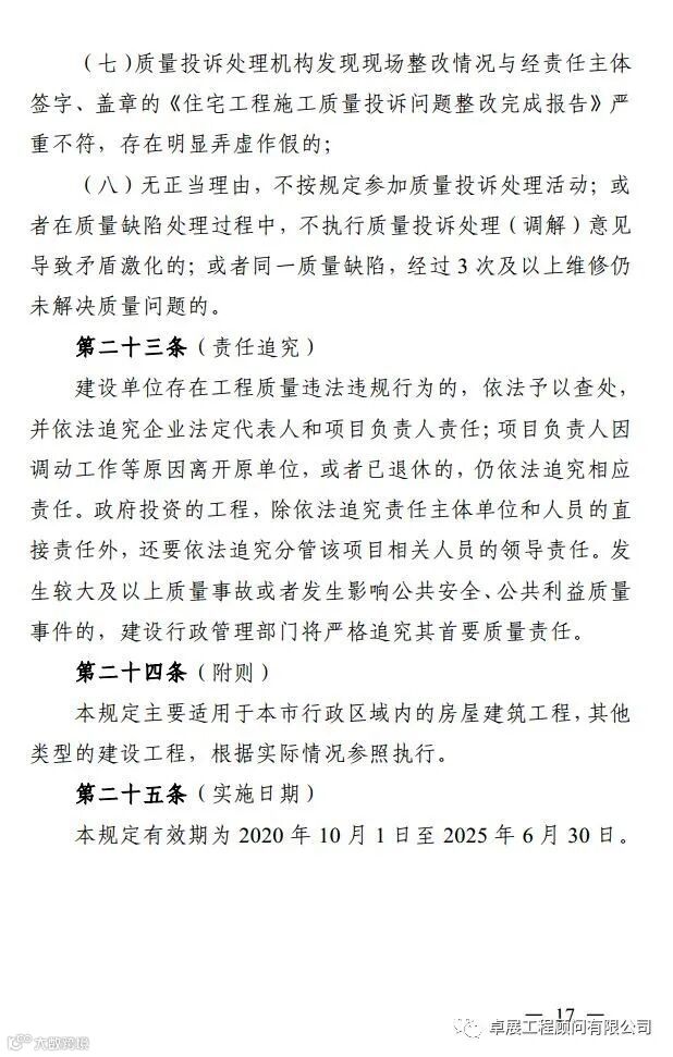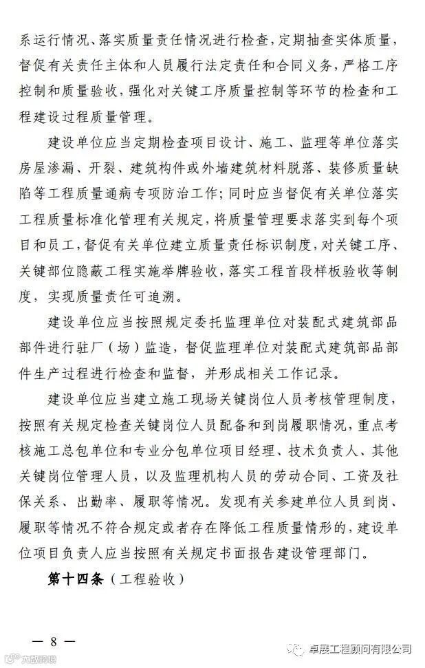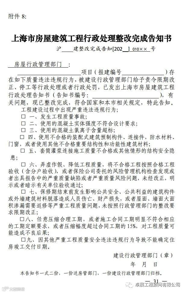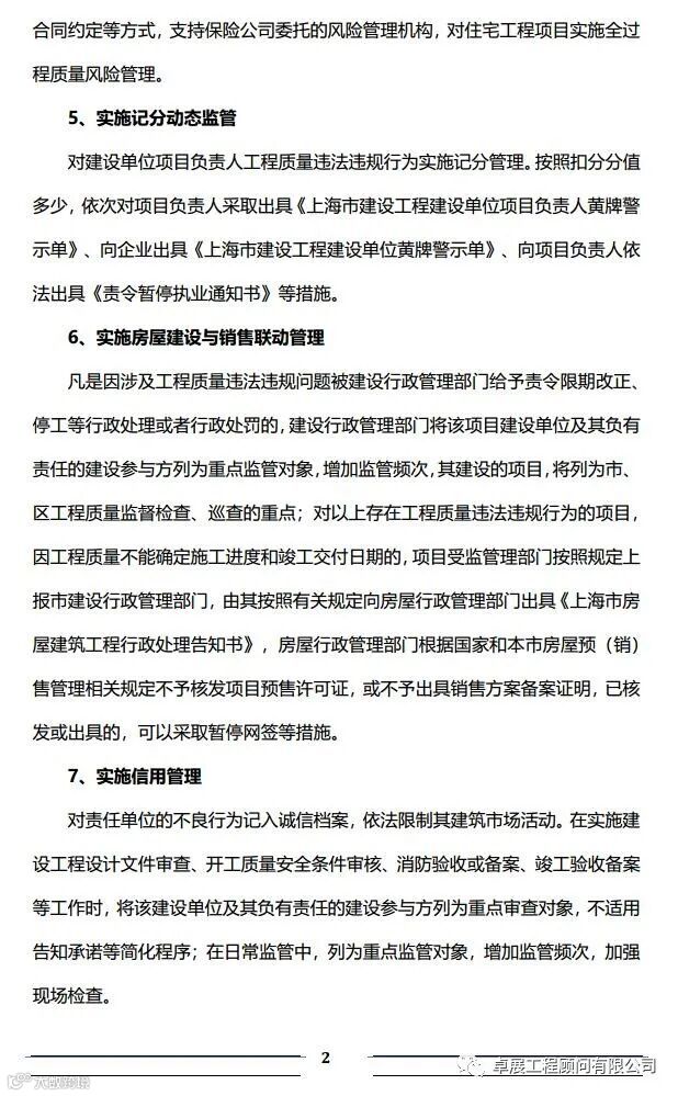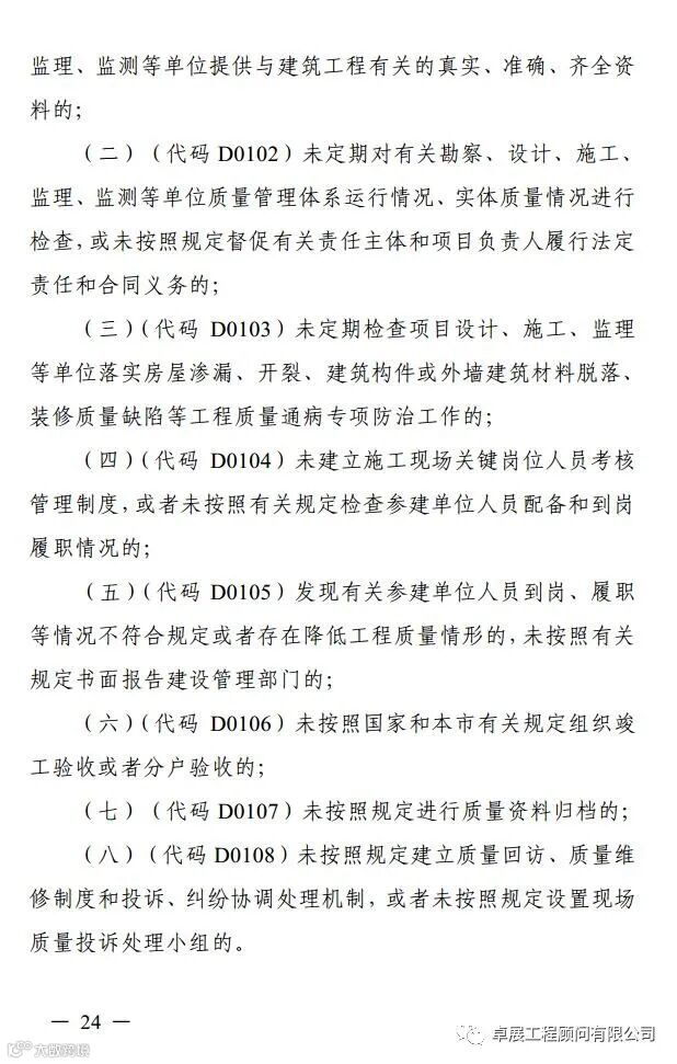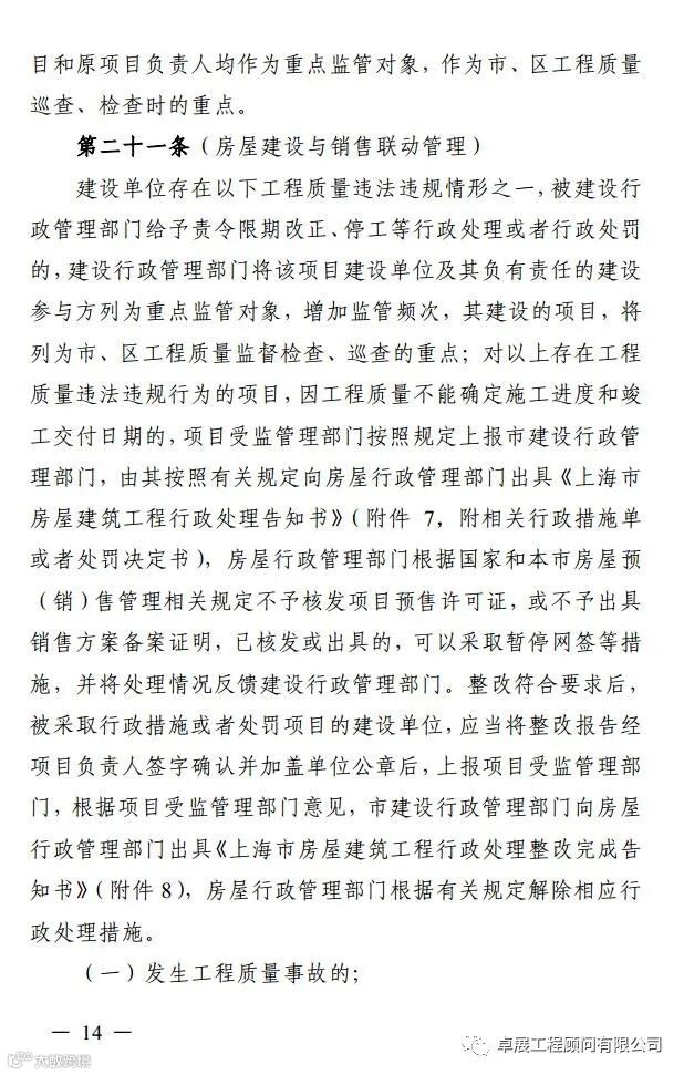 近日,上海市住建委、市房管局制定了《上海市建设工程建设单位首要质量责任管理规定》(以下简称《规定》)。《规定》中明确建设单位应建立健全质量管理体系,根据项目规模,配备项目负责人、项目质量总监(项目首席质量官)、勘察设计质量主管、施工质量主管等人员,并明确其质量责任。