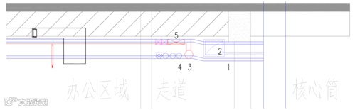 1. 排烟从核心筒进办公户内,每层通常会出现两处