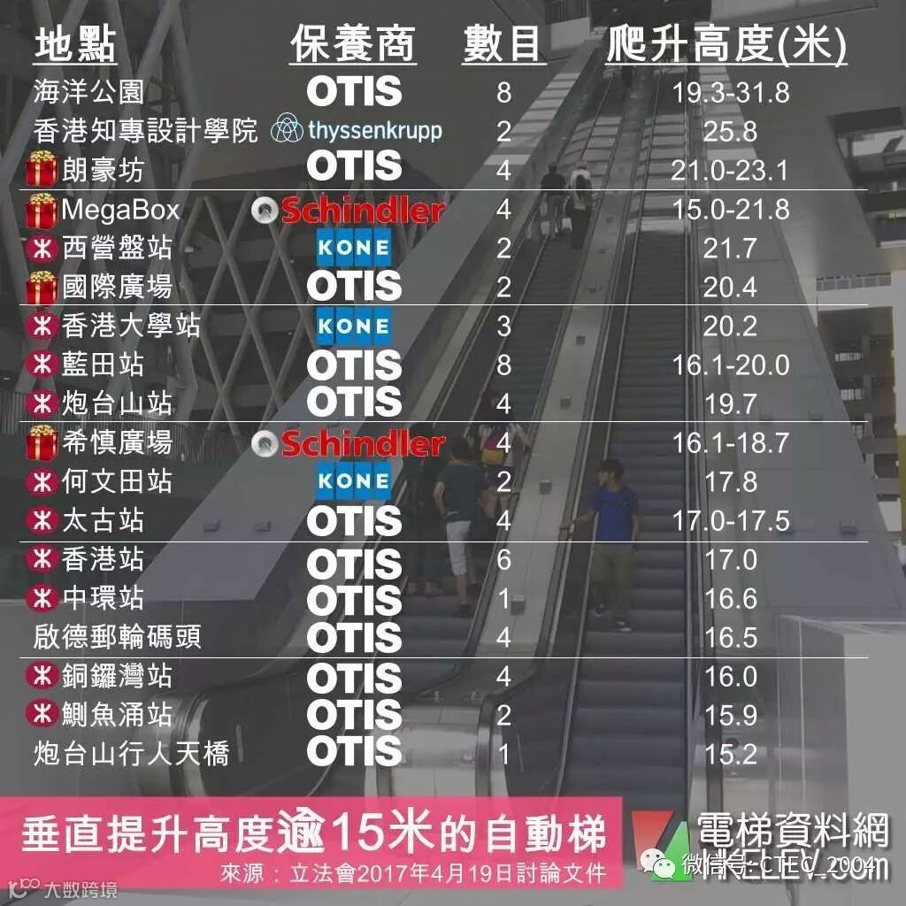 由於量度比較困難,而且本港亦有其他長度相近自動梯,故列出如下作參考: