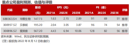 短期角度:看好疫后消费复苏下,医美需求反弹拉动产品销售增长;长期角度:一方面,国内医美渗透率仍处在较低水平,同时政策大力推动重组胶原蛋白等多种医美产品研发布局,拉动市场供给多样化,增强消费者对医美认知,同时规范化行业发展,保障行业能够持续性稳步向上。