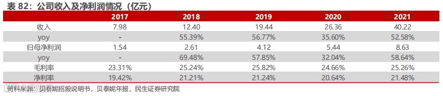 公司成立于2010年,是一家集研发、生产和营销为一体,定位于皮肤健康互联网+的大健康产业集团。2017-2021年,公司营业收入由7.98亿元增长至40.22亿元,CAGR达49.83%、归母净利润由1.54亿元增长至8.63亿元,CAGR达53.86%。