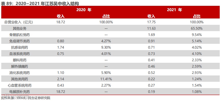 江苏吴中医药发展股份有限公司成立于1994年,于1999年在上交所上市,公司业务聚焦医药领域,包括抗病毒/抗感染、免疫调节、抗肿瘤、消化系统、心血管类药品的研发、生产和销售。2021年总营收17.75亿人民币,同比下降5.14%,归属母公司净利润0.23亿人民币,同比增长104.5%。