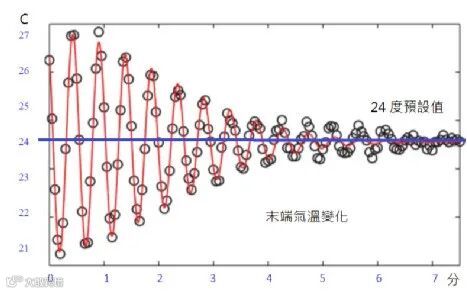 然而,房间温度的惯性是远大于上述控制环节的,简单来说是空调系统的延时反应,房间温度很难在10分钟内发生显著改变。如果控制器每10分钟捕捉一次房间温度,据此调节水阀开度是比较合理的, 但因10分钟采集一次温度的时间太长就失去空调温控的原意, 而永远达不到预设的空气温度。但是,像目前这样每10秒捕捉一次房间温度,控制器得到的常常是回风温差传感器的误差,据此调节水阀,再加上PID调节的积分作用,末端的空气温度会在预设值上下徘徊而慢慢迫近预设温度(over shoot & hunting)。