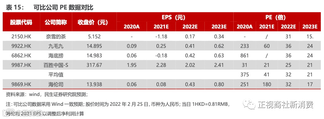 奈雪的茶与九毛九具有与海伦司相似的年轻化品牌基因,同属于新消费领域,扩张速度快;海底捞为餐饮火锅行业标杆品牌,在国内已形成可观规模;百胜中国覆盖赛道广泛,品牌认知度高。