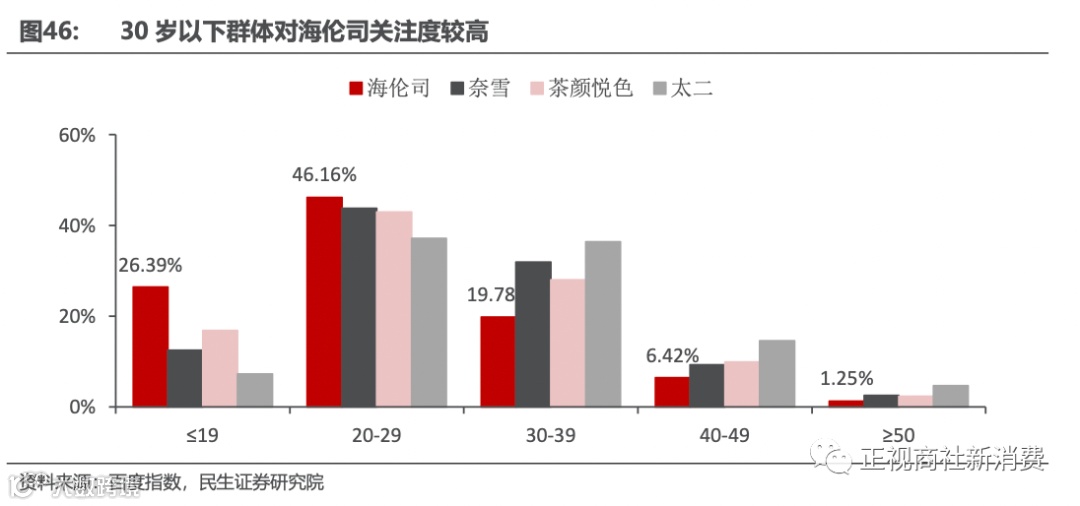 注重线上营销,持续辐射年轻群体。海伦司注重线上品牌推广,在微博、抖音、微 信公众号等年轻人聚集的平台上保持“有趣、接地气”的品牌形象,根据百度指数 用户画像,30 岁以下年龄阶段群体对品牌关注度最高。2021 年“Helen’s 可乐桶”挑战视频在抖音走红,累计播放量超过 10 亿次,提升曝光频次刺激消费。门店建立微信群与顾客保持高频互动,顾客可通过扫码投票决定第二天的门店歌单,增强消费参与感。截至 2021 年 8 月 31 日,海伦司线上社交媒体账号累计粉丝数逾 750 万,日常发布买一送一、新店开业同城免费畅饮等活动信息,持续为线下门店引流。