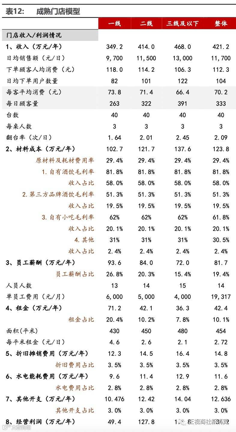 年均营业天数: 2021 年开始新冠疫情影响减弱,成熟门店经营天数恢复疫情前水平,受年内新增门店影响,摊平经营天数应短于正常水平。