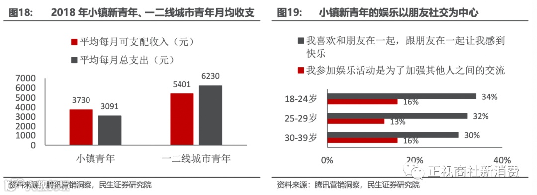 “小镇青年”娱乐时间更加富足,但是线下娱乐场所匮乏,高性价比小酒馆填补市 场空白。根据青山资本的研究报告显示,“Z 世代”的年轻人更多分布于下沉市场, 特别是河南、广东、山东等地。从消费潜力来看,根据《腾讯 2019 年小镇青年研 究报告》,小镇新青年平均每月可支配收入为 3730 元,平均每月总支出 3091 元, 一二线城市青年则为 5401 元。虽然收入水平有差距,但小镇新青年的生活成本较 低。一二线城市青年的每月总支出平均为 6230 元,和每月可支配收入对比很大程 度属于入不敷出。从空闲时间来看,64%的小镇新青年每日工作时间少于 8 小时, 相对于一线城市严重的加班文化,工作时间长,压力大,小镇新青年拥有大量完整 的时间休闲娱乐。从社交观念来看,不同于一二线人群的独处偏好,小镇新青年更 加倾向于熟人、半熟人社交,娱乐方式、消费行为均会受到朋友偏好和推荐影响。同时,低线级城市的线下娱乐场所更加匮乏,53%的小镇青年评价所在城市的线下 娱乐为“单调”,亟需更加丰富的娱乐活动。因此,高性价比线下社交娱乐小酒馆 完美填补市场空白,具备极强的市场潜力。